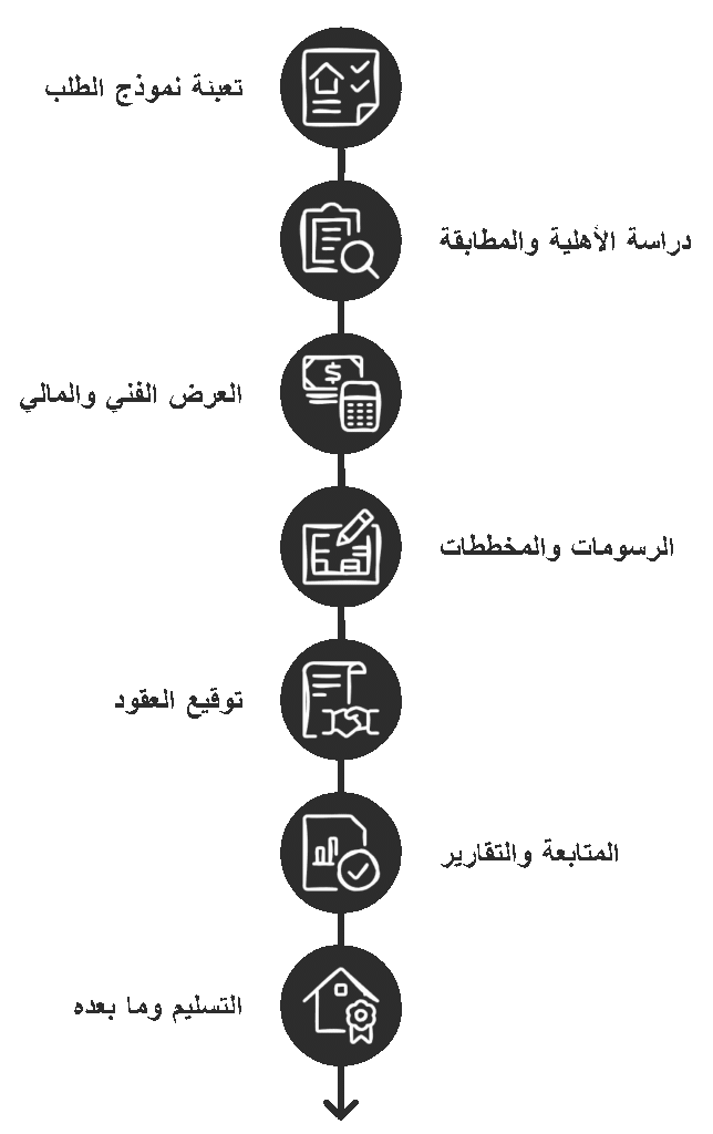 مسار برنامج البناء بالتقسيط من الطلب حتى التسليم